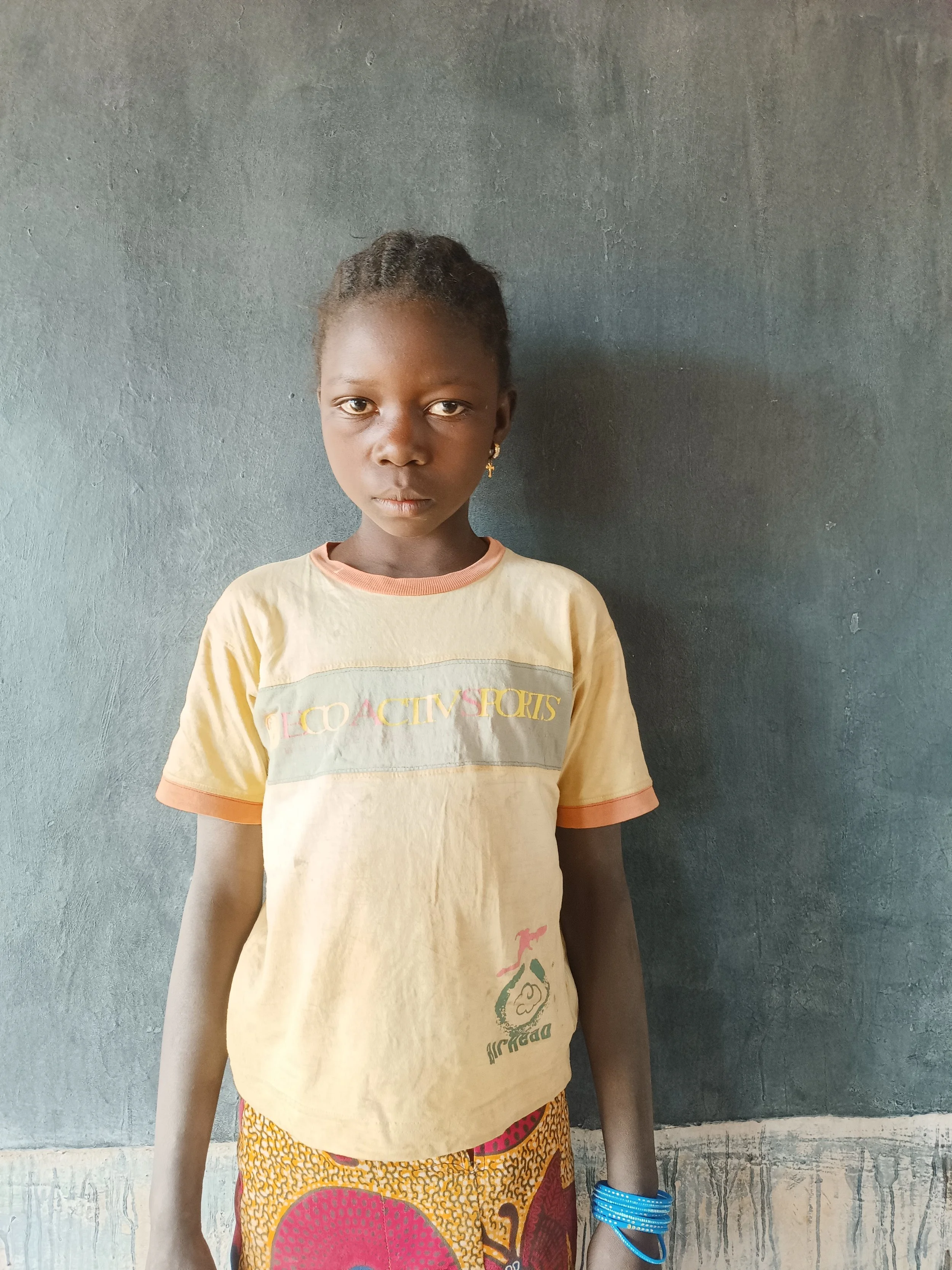 Kabre is 10 years old and is in CE2. She has four siblings and enjoys helping with small tasks at home.